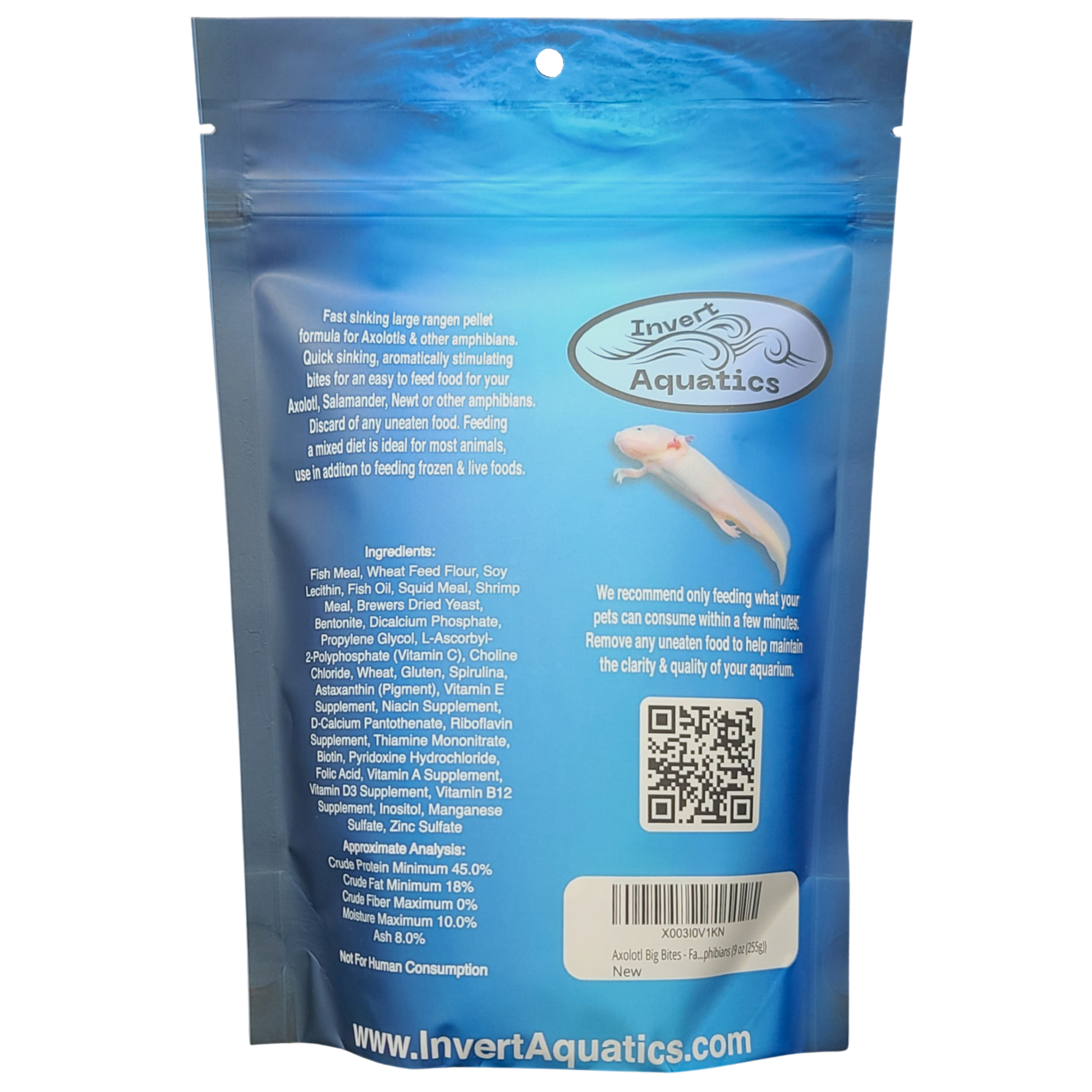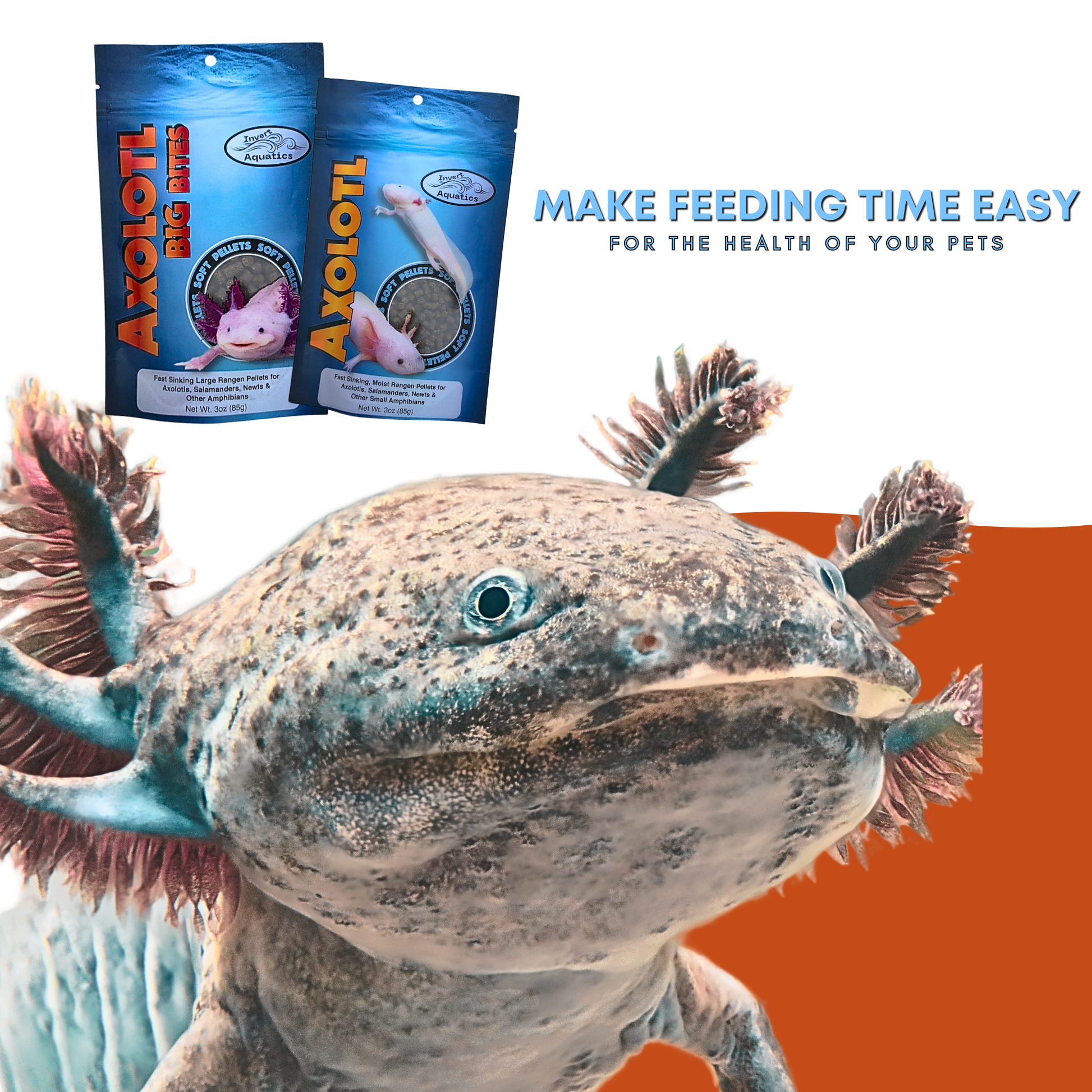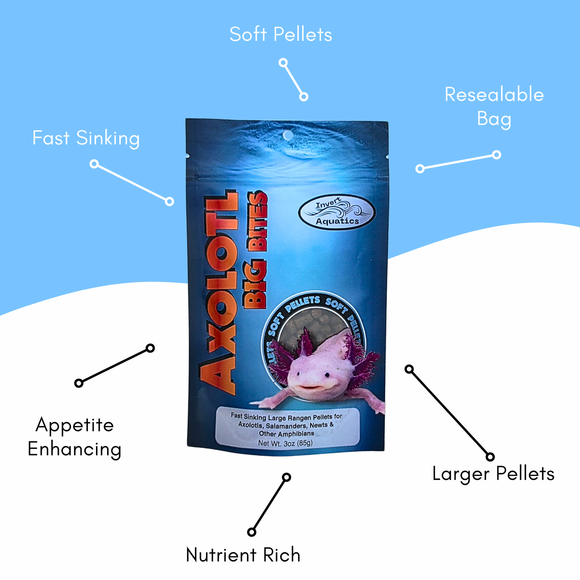 Advanced Nutrient-Rich Soft Pellet Diet for Axolotl & Small Amphibians. Quick sinking, aromatically stimulating bites for a delicious daily diet for your Axolotl! Great for Axolotls, Newts, Salamanders and More! Easy to break apart for small and baby amphibians & reptiles. Moist & Soft Pellets made for easy & enticing meal times. Larger Bites for Adult Axolotls & larger amphibians.