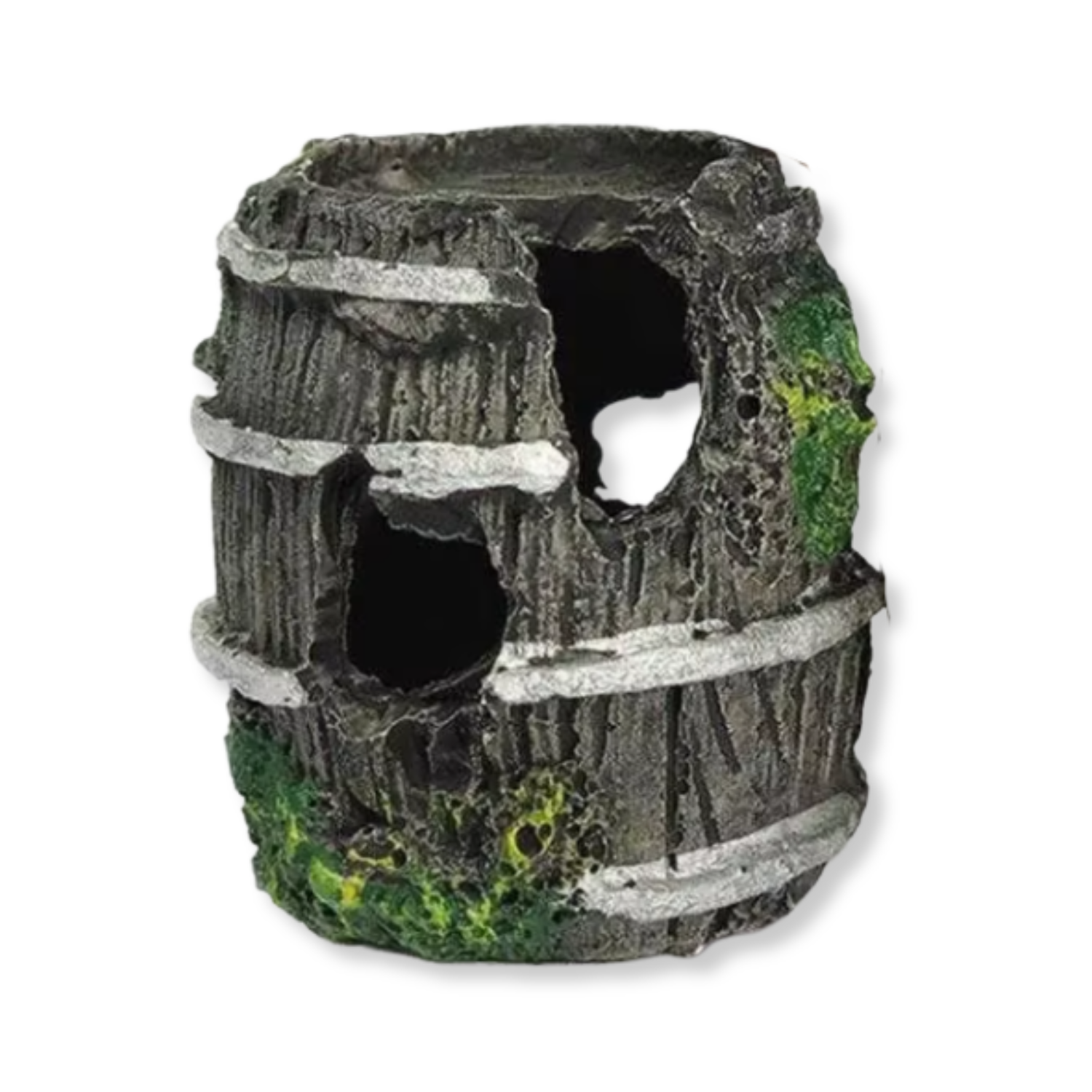 Give your aquarium the authentic charm it deserves with this expertly crafted resin barrel decoration. Smaller fish and creatures will appreciate the secure shelter this piece provides, reducing stress and encouraging natural behaviors. At approximately 2.3" by 2.15", it fits seamlessly into any tank setup while adding visual interest and depth to your underwater landscape.