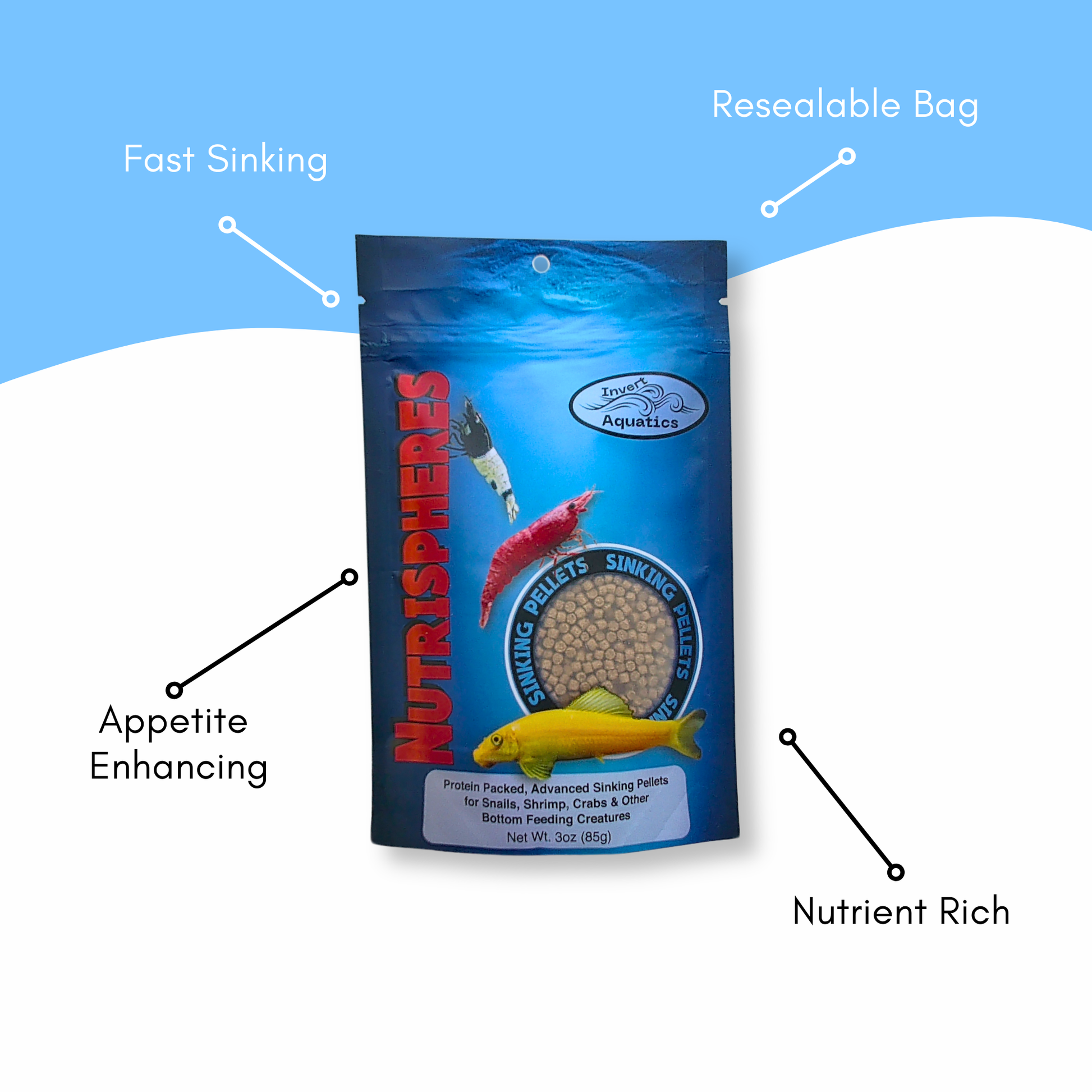 NutriSpheres are a specially designed, advanced daily diet for bottom-dwelling aquatic creatures such as shrimp, snails, and crabs. These quick-sinking pellets provide complete nutrition without clouding the water, making them ideal for keeping your tank clean.