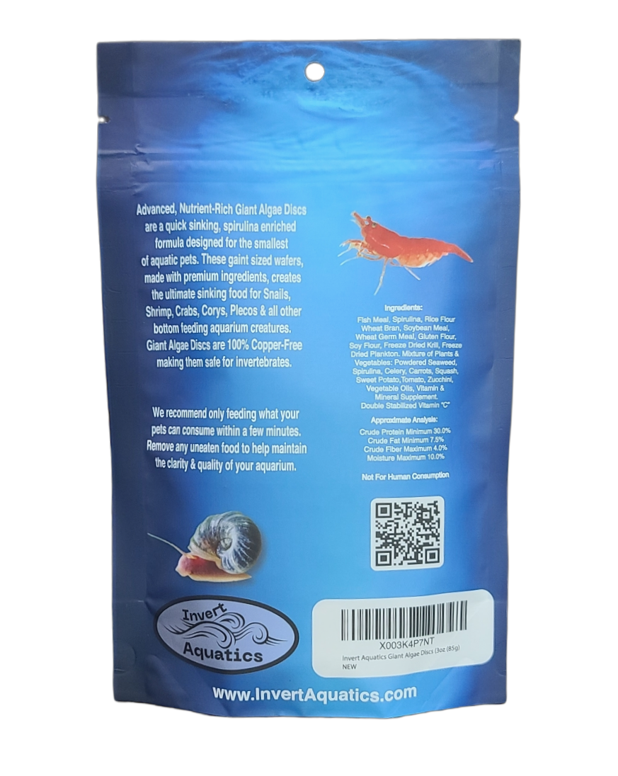 These advanced algae discs are specially formulated for snails, shrimp, and other bottom-feeding creatures. Enriched with Spirulina, they provide a nutrient-rich, quick-sinking diet perfect for larger aquatic pets.
