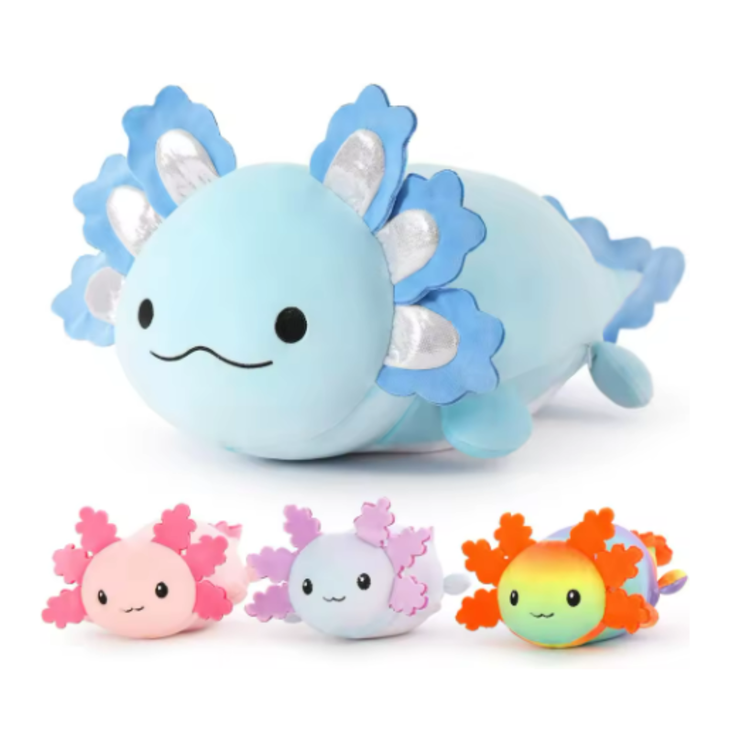 Introducing a jumbo-sized mama axolotl plush that's as fun to hug as it is to explore! This 23.5-inch softie features a hidden zippered compartment in her tummy holding three precious baby axolotls waiting to be discovered. Perfect for imaginative play or display, she's the gift that surprises again and again. Ideal for axolotl enthusiasts of all ages!